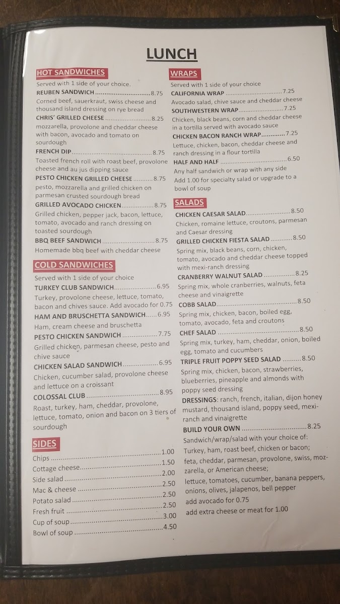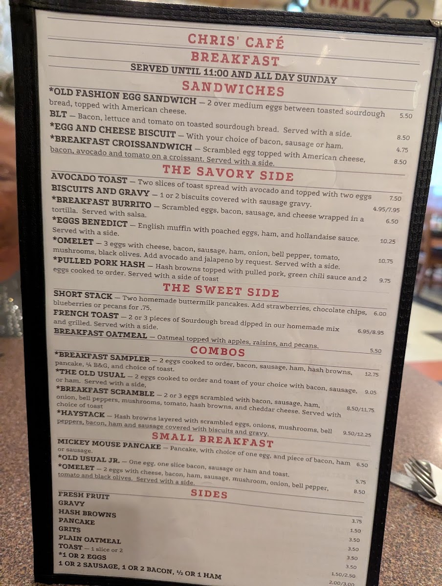 Overall, the menu at Chris Cafe feels thoughtfully curated, focusing on comfort, familiarity, and variety rather than unnecessary complexity. It successfully brings together breakfast classics, kid-friendly options, dependable sides, and a wide range of drinks, making it an easy choice for a relaxed and satisfying dining experience in Greeley.