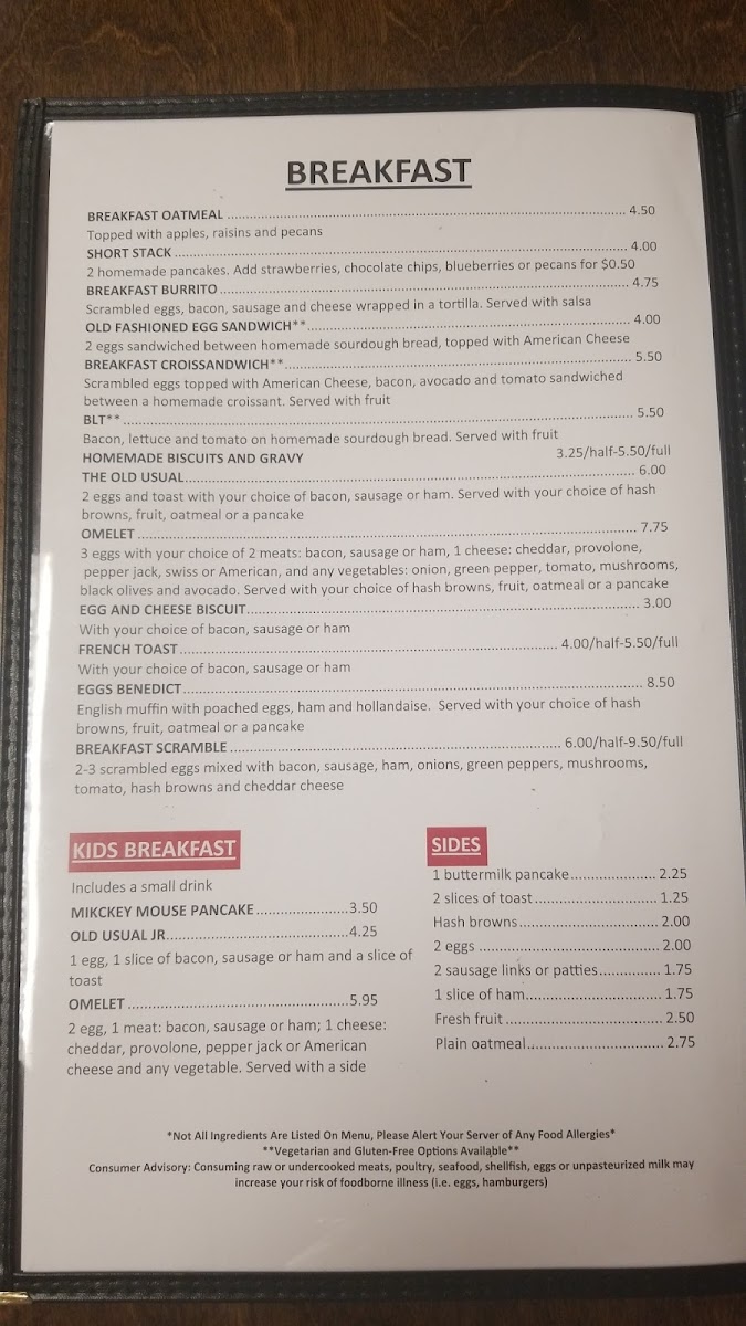From a reviewer’s perspective, the menu at Chris Cafe offers a comforting and well-rounded selection that reflects the charm of a classic American café. The breakfast lineup feels especially inviting, with familiar favorites like Breakfast Oatmeal, Short Stack, and the hearty Breakfast Burrito, alongside simple yet satisfying options such as the Old Fashioned Egg Sandwich* and Breakfast Croissandwich*. For families, the kids’ breakfast menu stands out with fun and approachable choices like the Character Pancake, Old Usual JR, and Omelet, making it easy for younger diners to enjoy their meal just as much as adults.